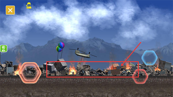 3、操控【直升机】,结合场景机制,对目标建筑发起破坏,推进游戏的破坏进程。
