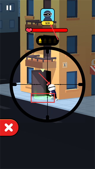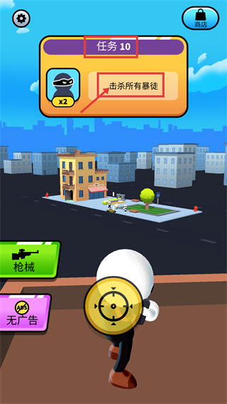 3、击杀一个暴徒后,关注剩余暴徒位置,继续瞄准射击,直至完成【1/2-2】的击杀进度。