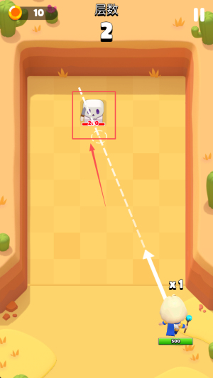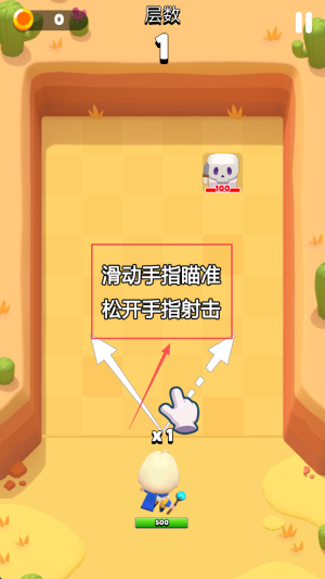 2、选择操作:在游戏界面中,滑动手指瞄准目标,松手射击进入第一层。
