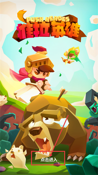 1、进入游戏先点击【点击进入】,开启【PUSH-HEROES-推拉英雄】的冒险,熟悉游戏初始界面是第一步。