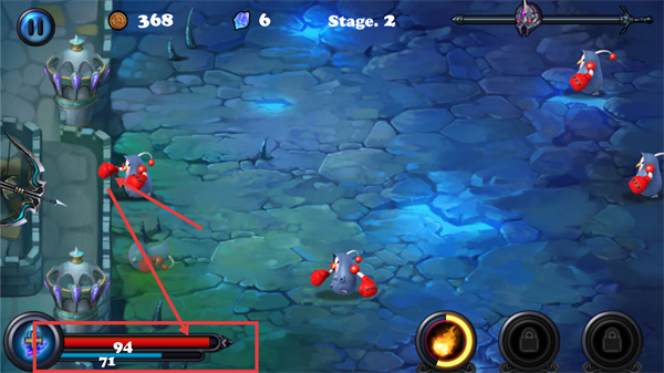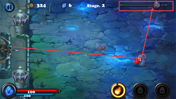 2、在【Stage-2】战斗中,操控弓箭瞄准怪物,关注上方进度条,利用基础攻击抵御敌人进攻。