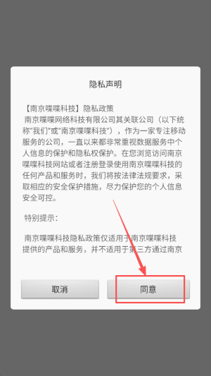 1、阅读隐私:浏览隐私声明后,点击同意。