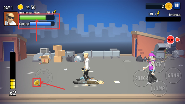 3、战斗中留意【Different-Man】的血量和【COMBO】条,同时收集金币,积累资源用于后续提升。