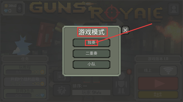 1、选择【独奏】游戏模式,单人开局,适合新手熟悉游戏机制与操作。