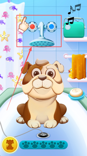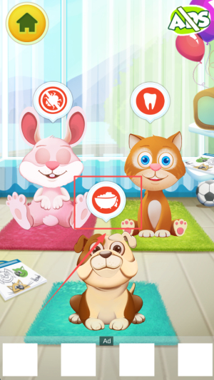 3、开始照料:进入房间后,点击食物和玩具完成喂食与清洁。