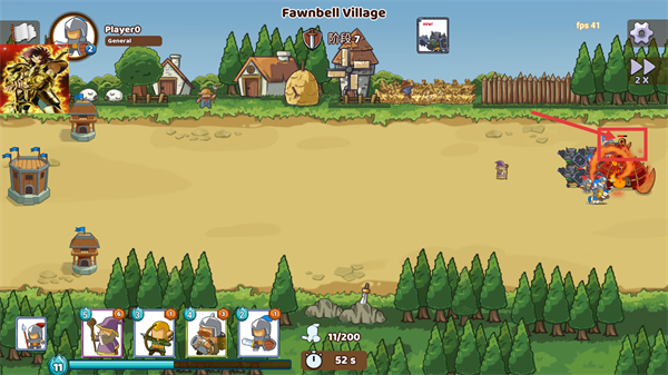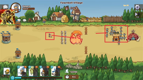3、进入【Fawnbell-Village】-阶段7,部署下方兵种维持【12/200】兵力配置,对抗敌方单位推进战局。