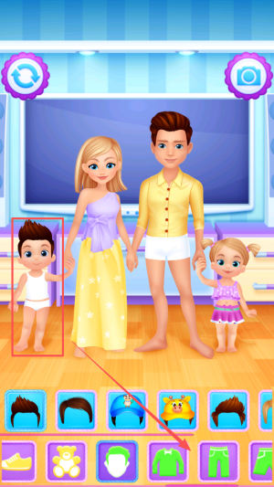 1、开启装扮准备:选择目标家庭与角色,观察角色特点,挑选适配的背景,明确装扮风格方向,熟悉服饰选择操作。