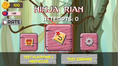 1、进入关卡:在100 nInJa Rian 1:33界面点击RATE,确认TEST PLATFORM E后进入。