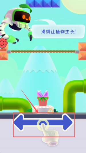 2、掌握操作:在滑屏让植物生长!界面,用手指上下滑动使植物长高。