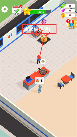 1、按照【拿起披萨吧!】的提示操作,获取处于【MAX】状态的披萨,以此推进当前店铺的任务流程。