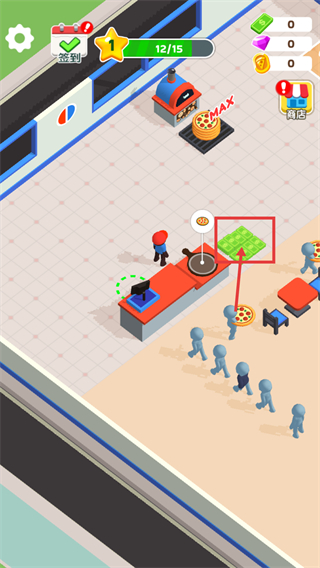 2、多元经营策略空间充足,可自由分配资源解锁新区域、升级披萨机与收银台,通过设施优化提升服务效率与收益上限。