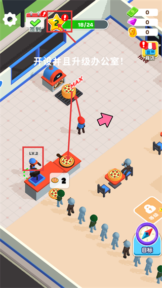 3、遵循【开设并且升级办公室!】的提示,完成办公室的开设与升级,提升店铺的运营等级及业务能力。