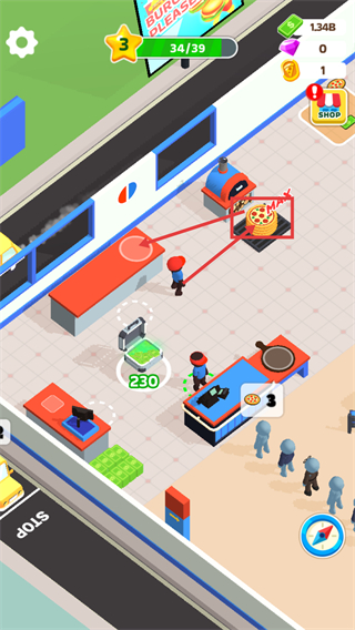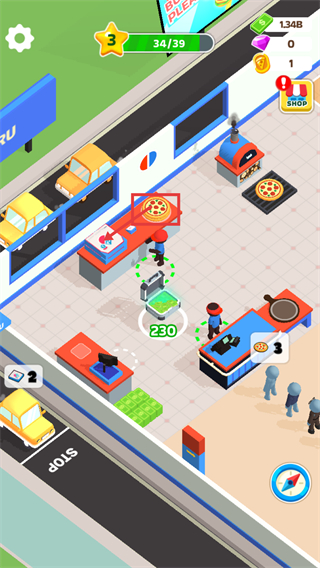 1、获取处于【MAX】状态的披萨,同时收取场景内的【230】资源,保障店铺订单的供应与资金储备。