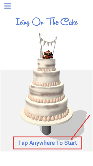 1、进入游戏时点击任意区域,触发【Tap-Anywhere-To-Start】,开启【Icing-On-The-Cake】的蛋糕装饰关卡。