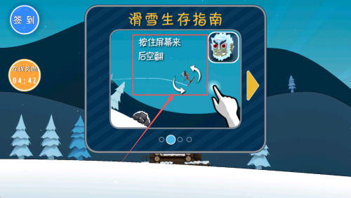 2、掌握后空翻:按住屏幕以执行后空翻动作,增加滑雪技巧。