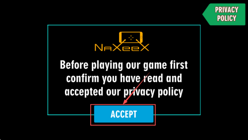 1、接受协议:点击“ACCEPT”按钮,同意隐私政策,继续游戏。