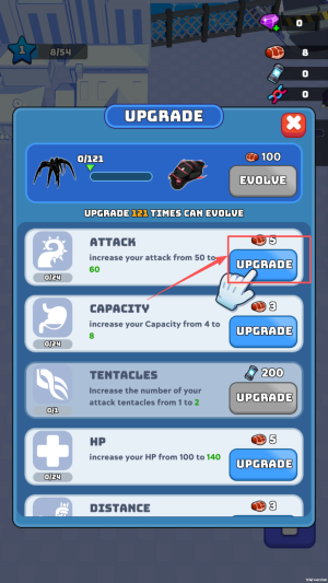 4、升级能力:通过“升级”选项增强蜘蛛的各项能力,提高效率。