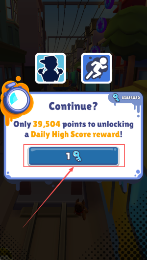 4、完成游戏:游戏结束后,会显示本次游戏的得分和金币,点击“继续”按钮可以选择是否继续游戏,或者查看“每日高分”奖励。
