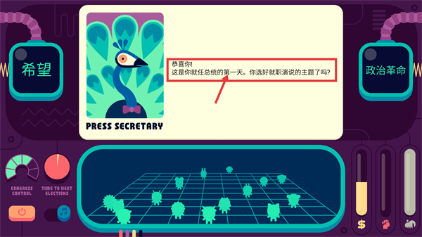 1、就任总统第一天,需选定就职演说主题,在【希望】与【政治革命】间选择,适配后续执政方向的基调。
