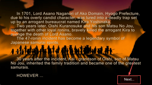 1、了解背景:阅读游戏背景故事,点击“Next...”以继续了解游戏的故事情节。
