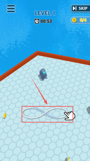 2、进入关卡:在SKIP LEVEL 1 00:53 0/4界面点击SKIP或等待倒计时。
