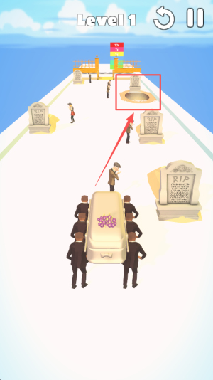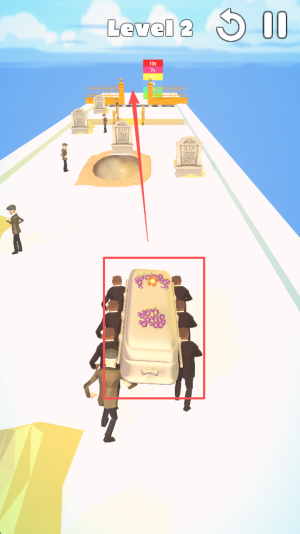 1、开启跑酷准备:选择目标关卡,熟悉抬棺队伍的操控方式,观察初始阻拦分布,明确 “躲避阻拦、顺利通关” 的核心目标。