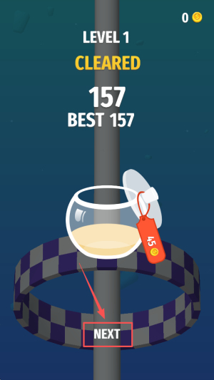 4、完成结算:显示LEVEL 1 CLEARED 157 BEST157,点击NEXT进入下一关。