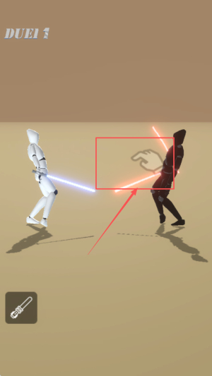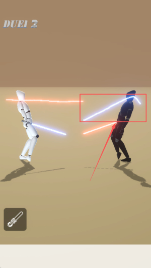 2、攻击对手:滑动屏幕以控制光剑攻击对手。