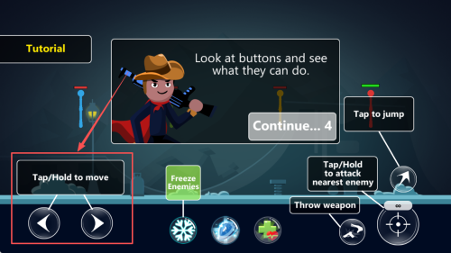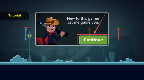 2、开始教程:点击“Continue”按钮,开始游戏教程。