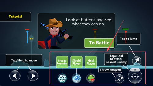 1 、控火柴人战对手:操控火柴人在关卡中移动、攻击,瞄准其他火柴人发起进攻,躲避敌方攻击的同时寻找反击机会。