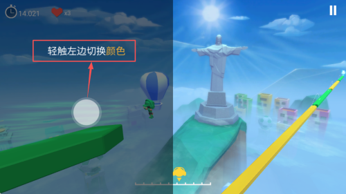 3、切换颜色:轻触屏幕左侧切换角色颜色,与地面颜色匹配。