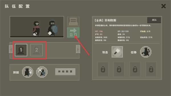 1、在【队伍配置】界面,将【士兵-贝利欧斯】安排至1/2号位,确认其【HP-106】等属性后,点击【GO】按钮完成队伍部署。