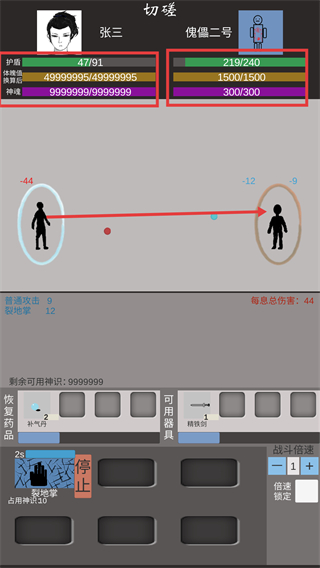 3、参与【切磋】时,留意自身【护体-4791】与【傀儡二号-219/240】属性,把控普通攻击节奏,避免护体先破损。