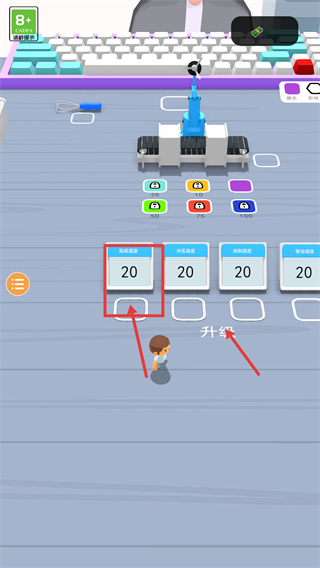 1、点击界面中显示【20】的功能模块,完成对应项的升级操作,解锁更多功能图标,以此拓展后续可执行的操作权限。