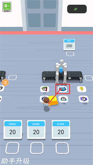 3、积累资源后点击对应功能图标完成【助手升级】,提升操作效率的同时,关注界面中的【200】数值进度,为进阶环节做准备。