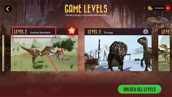 1、进入【GAME-LEVELS】界面,选择解锁的【LEVEL-2-Gusthon-Woodland】进入关卡,也可点击【UNLOCK-ALL-LEVELS】解锁全部关卡。