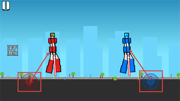 2、对局中操控机甲,借助【红色方向控制按钮】或【蓝色方向控制按钮】调整位置,适配城市场景的移动节奏,为后续攻击做准备。
