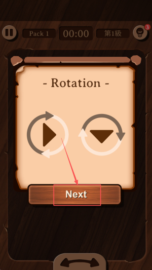 2、开始挑战:在Pack1 00:00第1级界面点击Next。