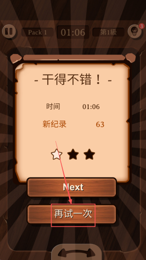 4、刷新纪录:出现01:06新纪录63点击Next继续挑战。