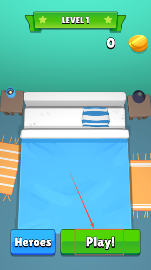 1、进入游戏:在LEVEL1 Heroes Play!界面点击Play!。