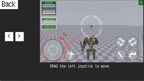 2、移动操作:进入游戏后,通过拖动左侧的虚拟摇杆来控制机器人移动。