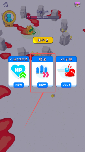 4、升级能力:在战斗中收集道具来升级你的角色能力,如生命值、射速和子弹数量。