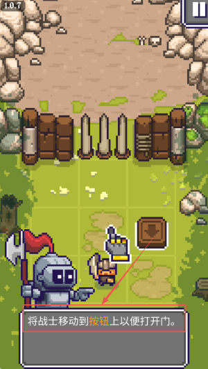 3、操作角色:将战士拖动到按钮上以打开门并继续前进。