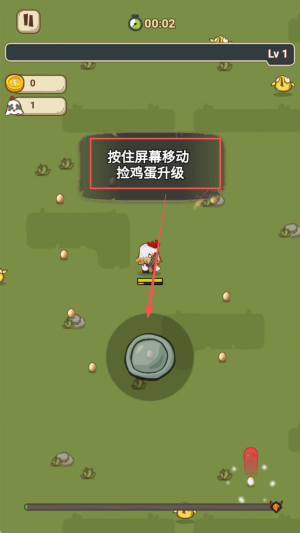 2、升级角色:按住屏幕移动角色,捡起鸡蛋进行升级。