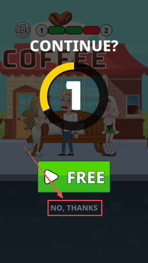 4、决定走向:在COFFEE FREE NO,THANKS界面选择继续或结束。
