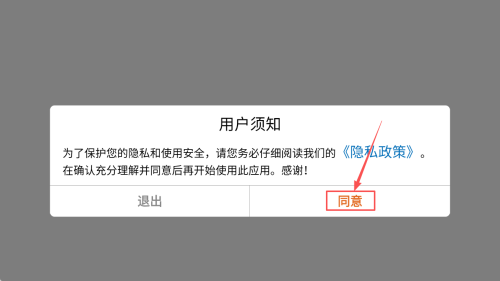 1、同意用户须知:点击“同意”按钮,接受用户须知和隐私政策。