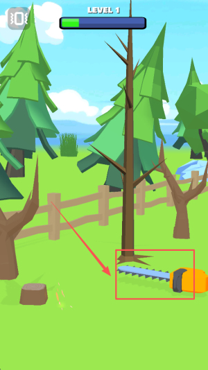 1、开启砍树准备:选择目标关卡,熟悉电锯、斧头的操作方式,观察当前树木类型与花园布局,明确 “高效砍伐、推进关卡” 。