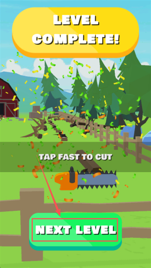 4、完成通关:出现LEVEL COMPLETE! TAP FAST TO CUT点击NEXTLEVEL继续。