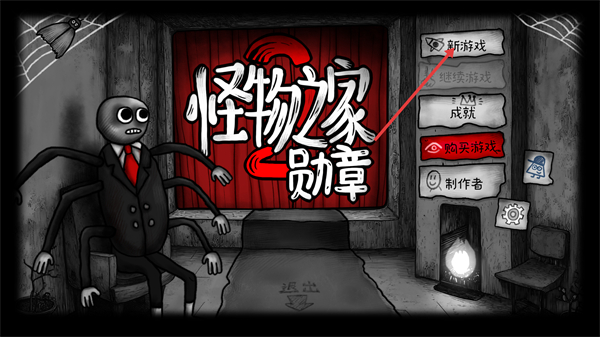 1、在【怪物之家勋章】的界面中,可通过【新游戏】开启游玩进程,也能查看【成就】,结束操作可点击界面的【退出】按钮。