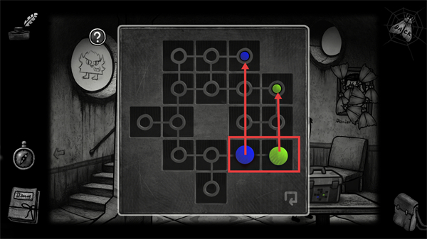 4、针对该解谜界面,需将【蓝球】与【绿球】移动到对应点位,完成后即可解锁相关内容,推进游玩进程。